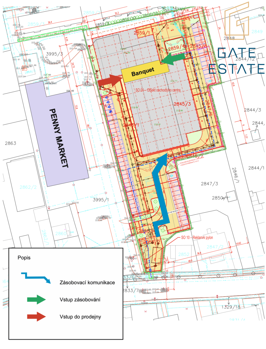 Jedná se o obchodní jednotku o velikosti 178m2 – aktuálně je zde obchod BANQUET, který koncem ledna 2025 končí. Ve fotografiích je také půdorys a situační nákres – prostro BANQUET.