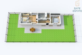 Dispozice: předsíň, šatna, ložnice, obývací pokoj s kuchyňským koutem, koupelna se sprchovým koutem a WC.