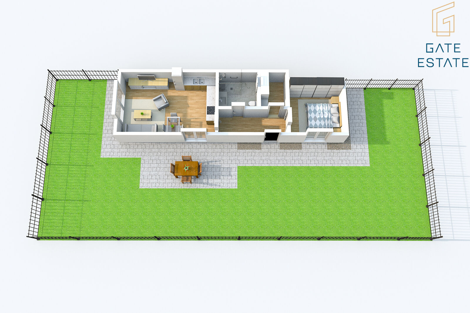Jedná se o byt s největší zahradou a největším soukromím – umístěný směrem na zelení vzrostlý městský val.