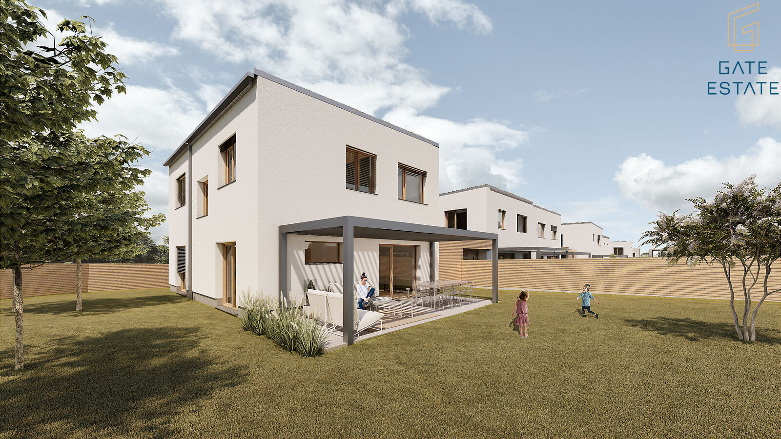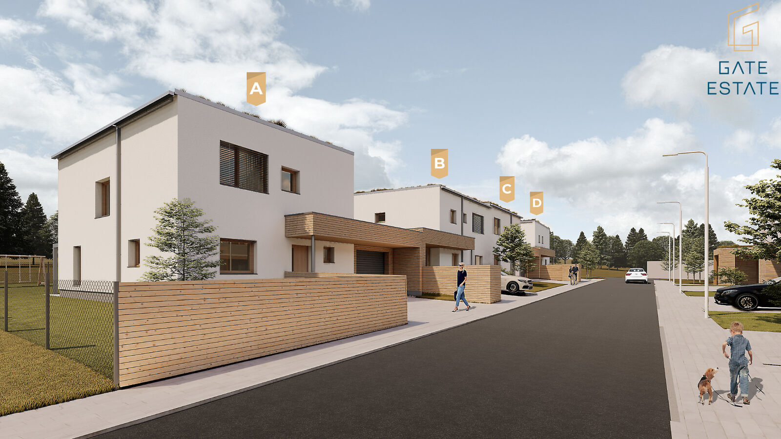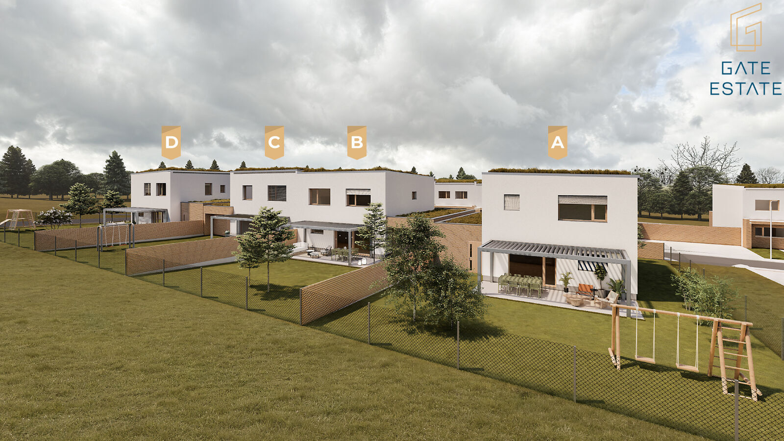 Jedná se o největší domy v tomto projektu. Domy jsou určené primárně pro čtyřčlennou rodinu s možností přizpůsobení pro potřeby větší domácnosti. Domy jsou v energetické náročnosti A = velmi nízké náklady na bydlení.