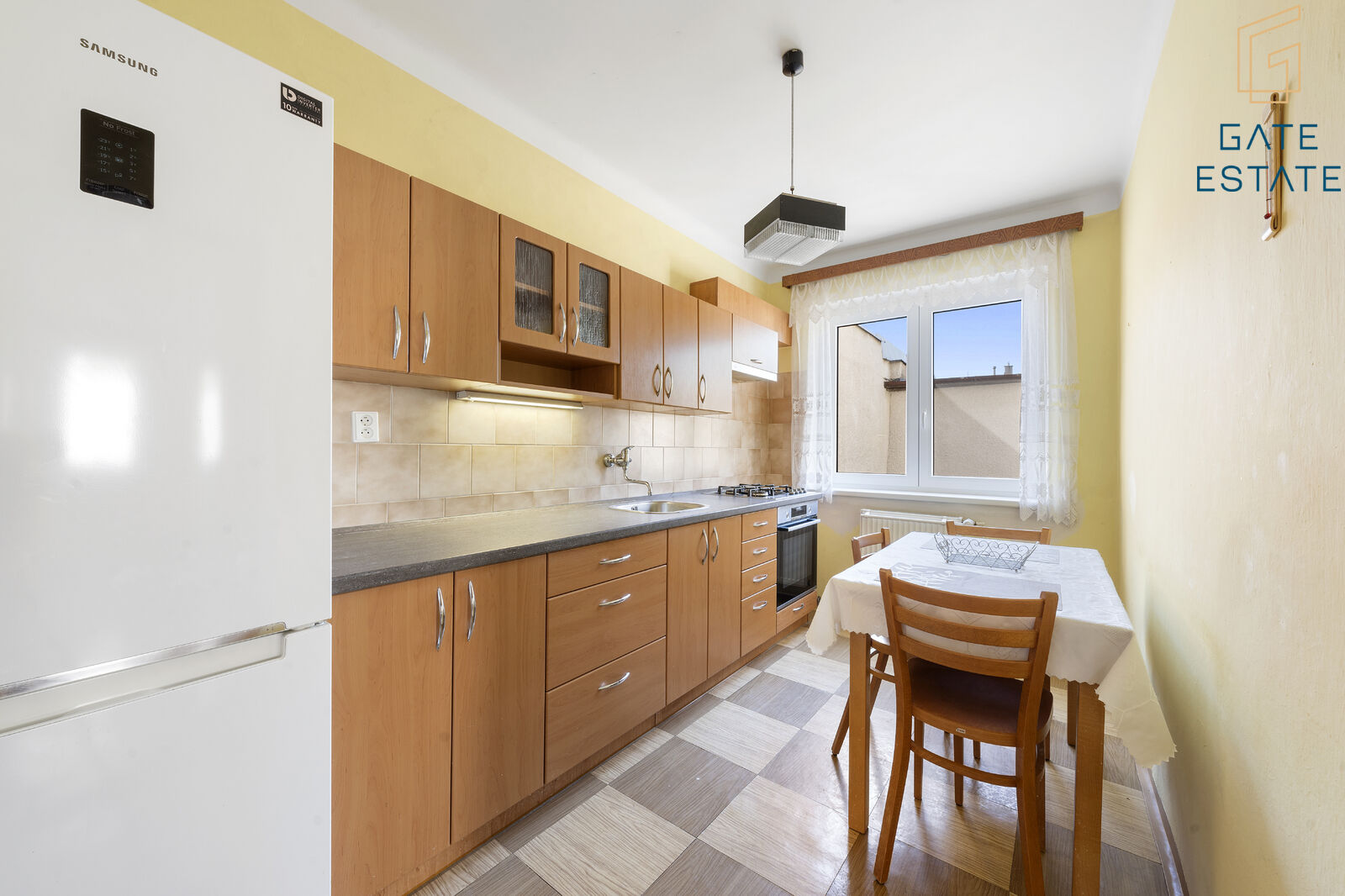 – Podlahy pokrývá lino, v koupelně a na WC je dlažba.