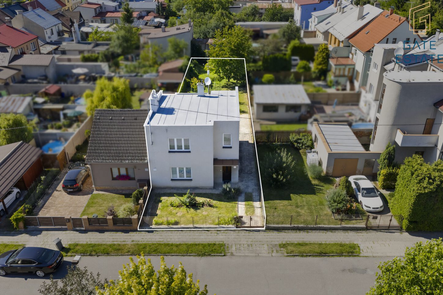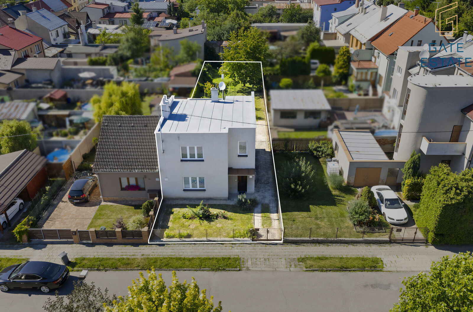 Za domem se rozprostírá zahrada, kde najdete jabloně a dva zahradní domky – ideální pro uložení hraček, sportovního vybavení, pneumatik nebo zahradního nářadí. Zahrada je klidným místem pro dětské hry, letní grilování i odpočinek po náročném dni.