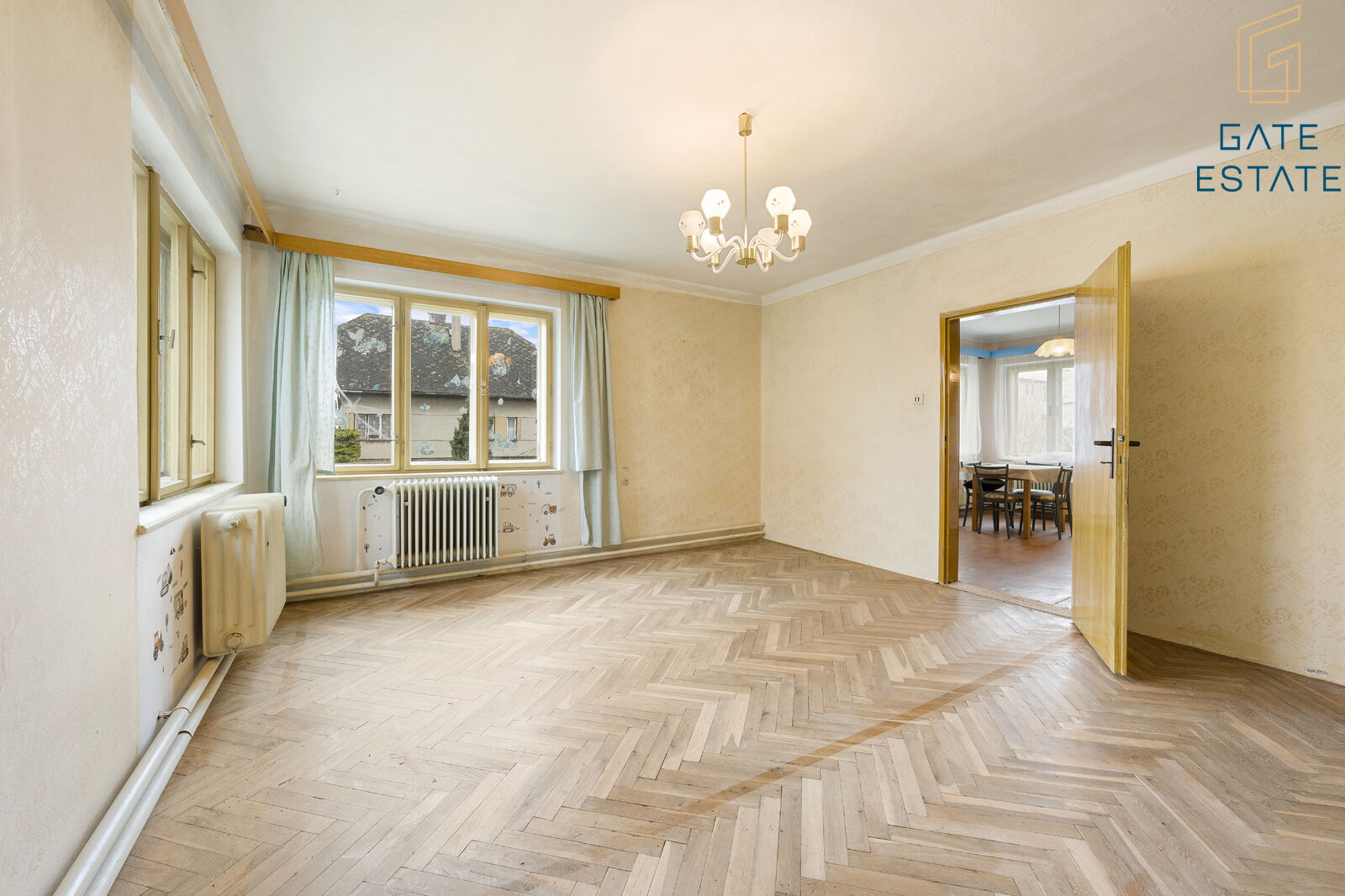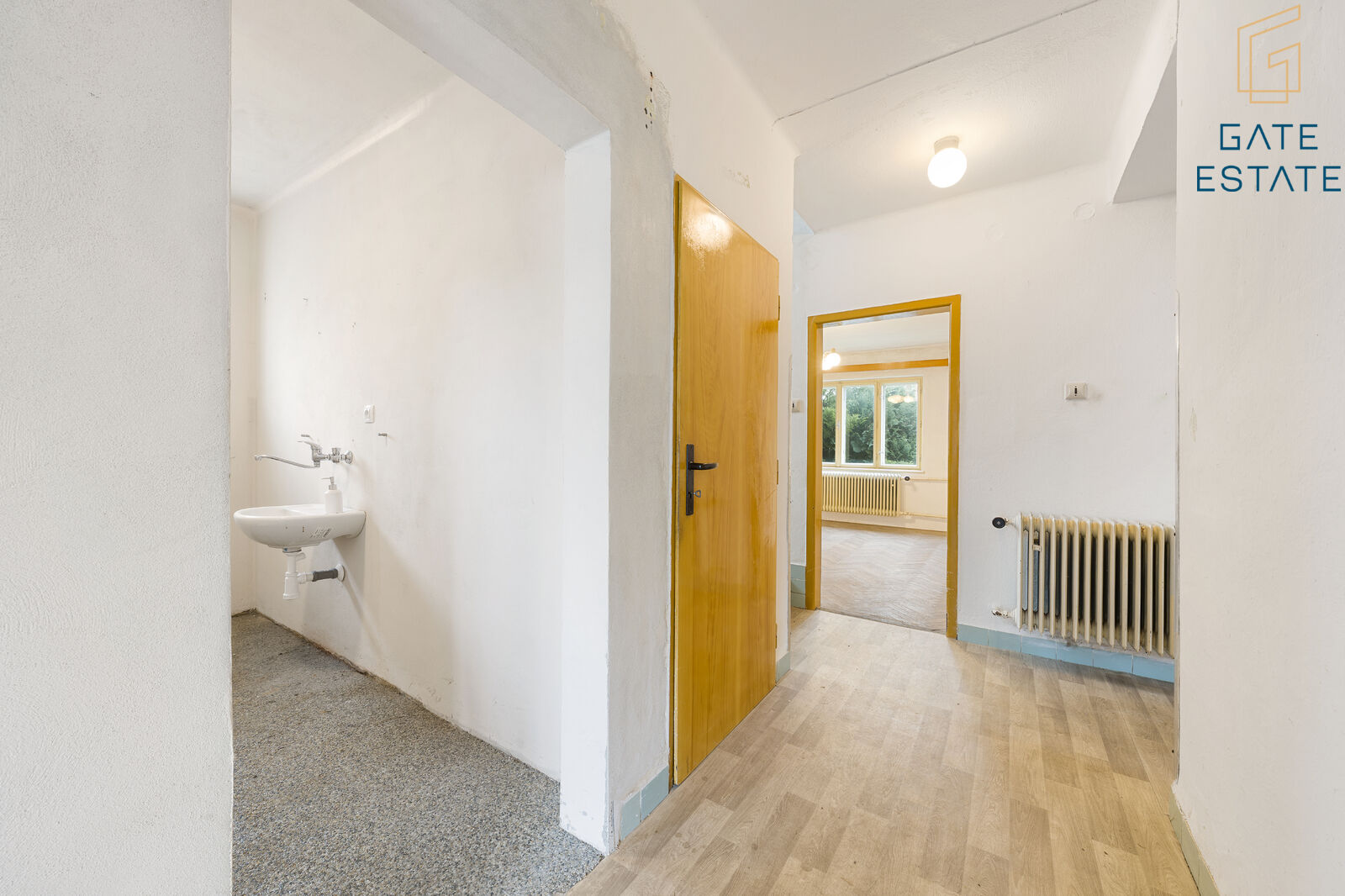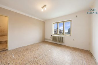 – 1. nadzemní podlaží: vstupní chodba, obývací pokoj navazující na kuchyni (ideální k propojení při rekonstrukci), samostatný pokoj, koupelna s WC.