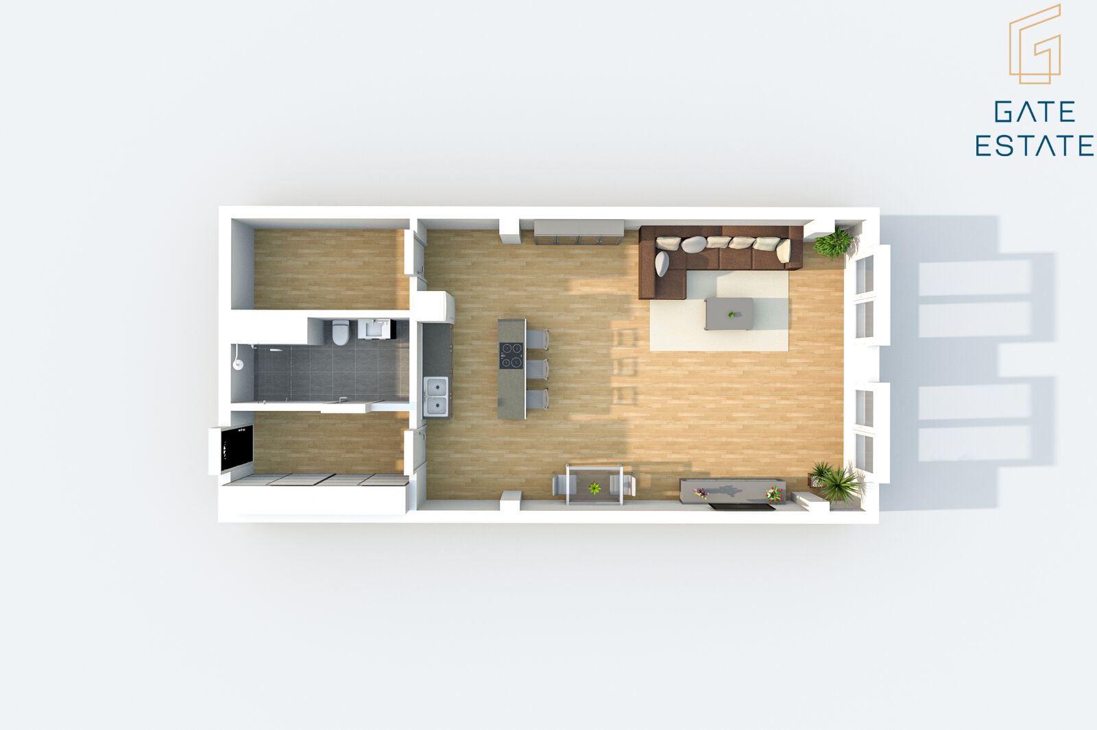 V tomto inzerátu uvádím byt 1kk, 75m2 + sklep, umístěný v 1NP – bezbariérově. Byt je vybavený kuchyňskou linkou na míru vč. spotřebičů výše uvedených – viz. fotografie. Pro lepší představu jsme pro Vás vytvořili 3D půdorysy (rozmístění nábytku je pouze orientační) pro lepší čitelnost a vizualizaci budoucí kuchyně. V barevném půdorysu, který uvádíme ve fotografiích, se jedná o byt č. 0.7.