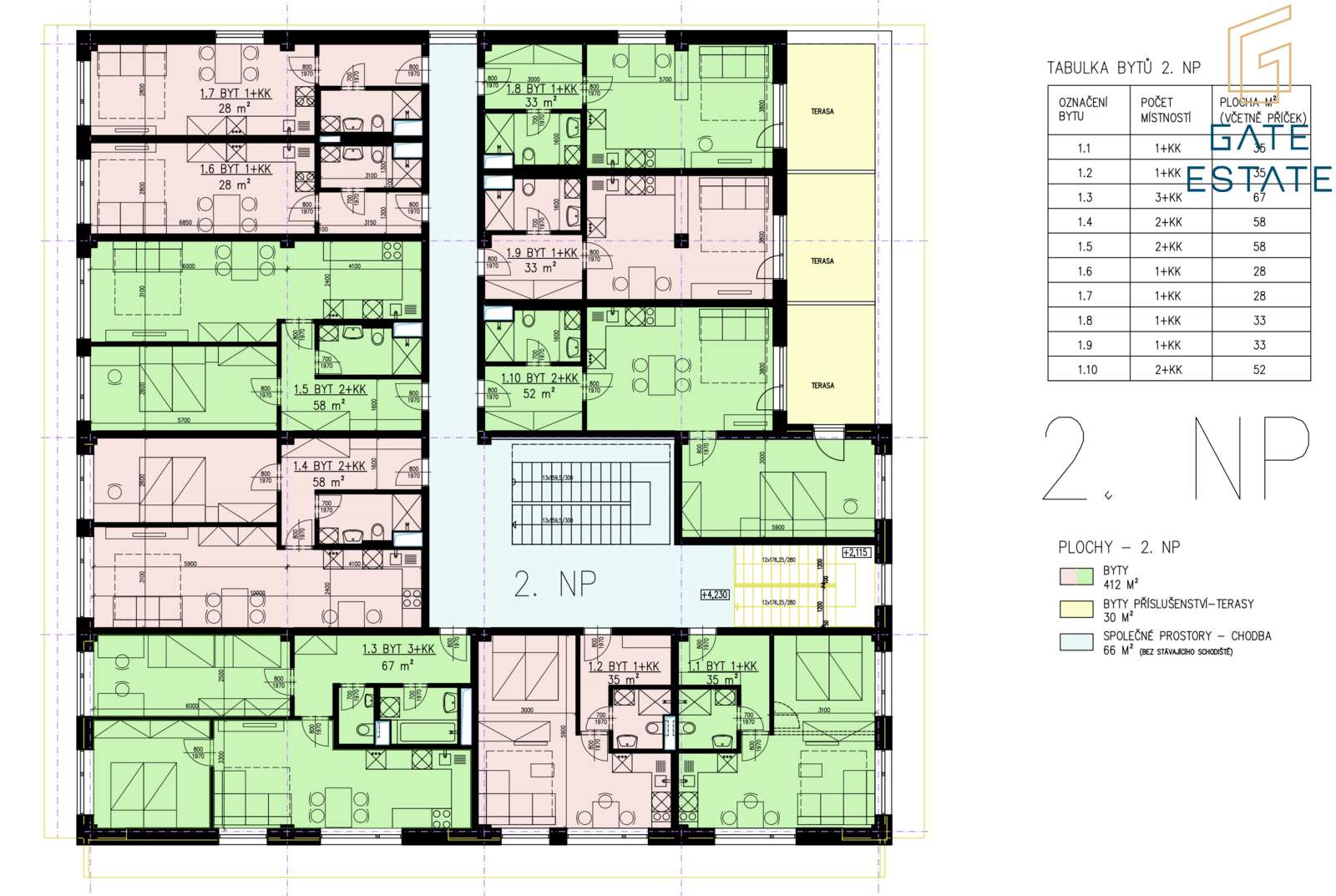 – ke každému bytu je přiřazený sklep v 1PP,