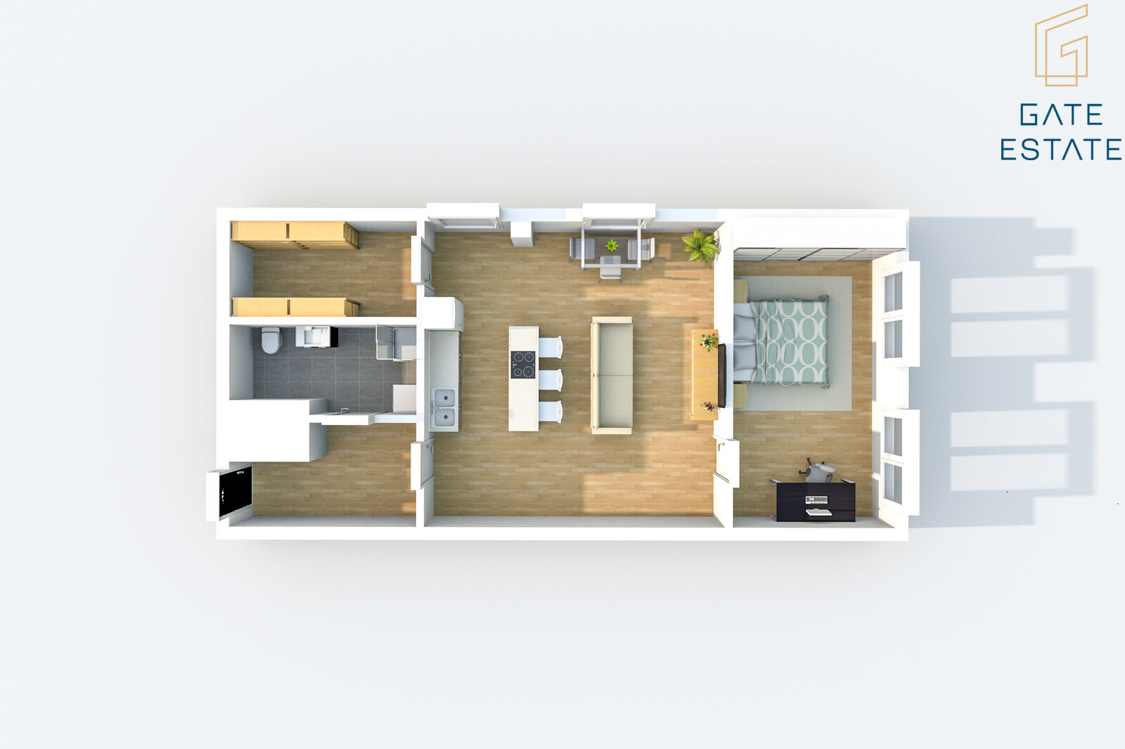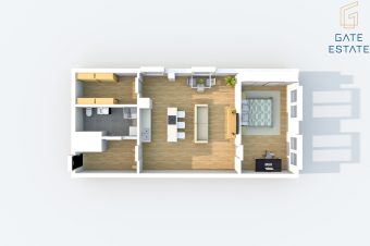 V tomto inzerátu uvádím byt 1kk, 75m2 + sklep, umístěný v 1NP. Byt je vybavený kuchyňskou linkou na míru vč. spotřebičů výše uvedených. V barevném půdorysu, který uvádíme ve fotografiích, se jedná o byt č. 0.6. V půdorysu není příčka která by tvořila dispozici 2kk, je to tedy dispozice 1kk.