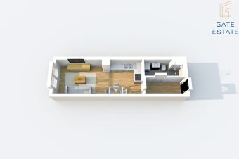 V tomto inzerátu uvádím byt 1kk, 33m2 + sklep, umístěný v 2NP. Byt je vybavený kuchyňskou linkou na míru vč. spotřebičů výše uvedených. Pro lepší představu jsme pro Vás vytvořili 3D půdorysy (rozmístění nábytku je pouze orientační) pro lepší čitelnost a vizualizaci budoucí kuchyně. V barevném půdorysu, který uvádíme ve fotografiích, se jedná o byt č. 1.6.