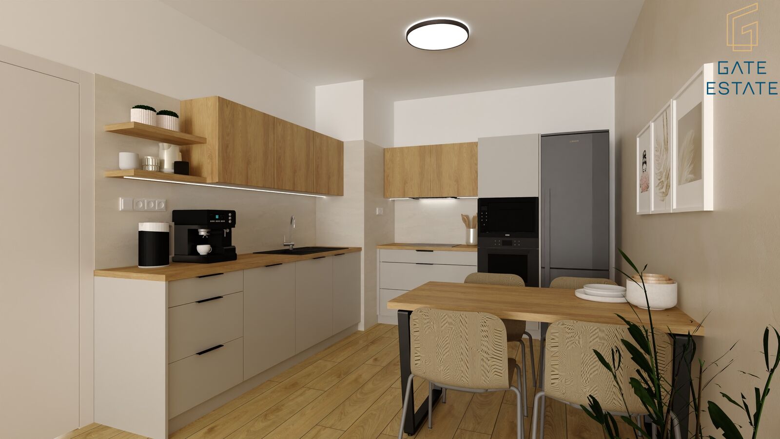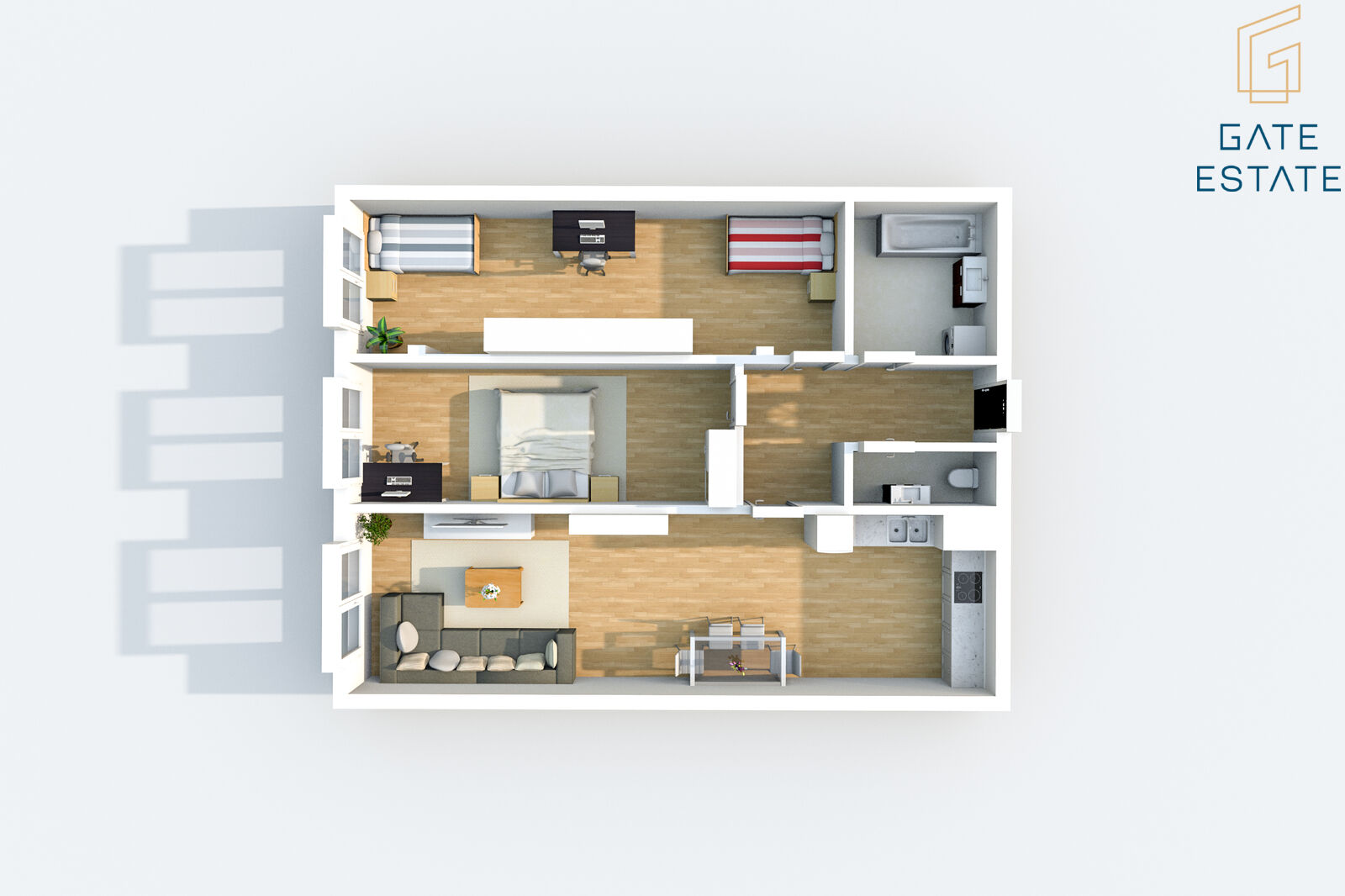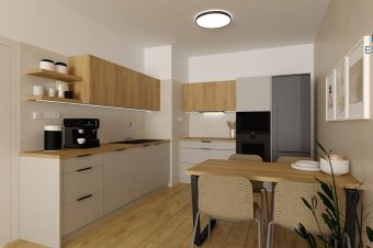 V tomto inzerátu uvádím byt 3kk, 96m2 + sklep, umístěný v 1NP. Byt je vybavený kuchyňskou linkou na míru vč. spotřebičů výše uvedených. Pro lepší představu jsme pro Vás vytvořili 3D půdorysy (rozmístění nábytku je pouze orientační) pro lepší čitelnost a vizualizaci budoucí kuchyně. V barevném půdorysu, který uvádíme ve fotografiích, se jedná o byt č. 0.3.