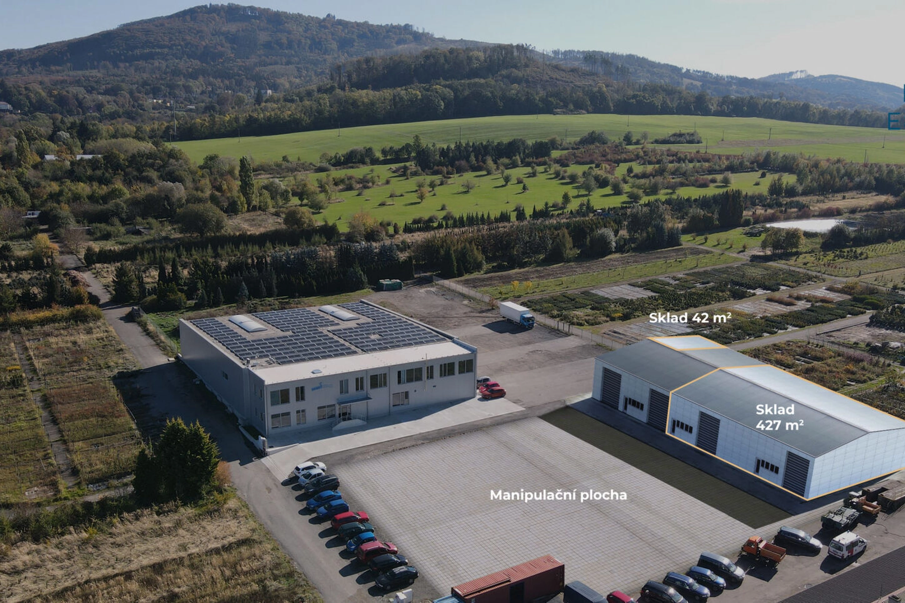 Jedná se o 2 volné sklady – 427m2 a 42m2, které je možné pronajmout zvlášť či dohromady.